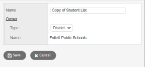1. At the Owner Name field, click Search icon. to select a different user, school, or intermediate organization.