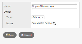 1. At the Owner Name field, click Search icon. to select a different user, school, or intermediate organization.