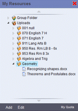 Note: If you have a specific place where you want a file or folder to appear, select that location in My Resources before you add the files.