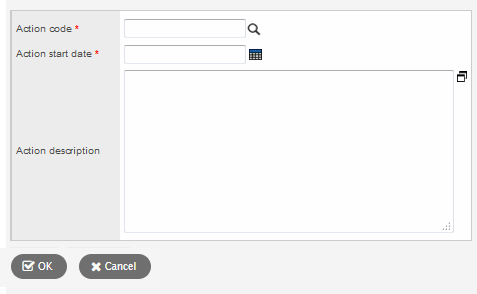 1. In the Action code field, click Search icon. to select an action from the pick list.