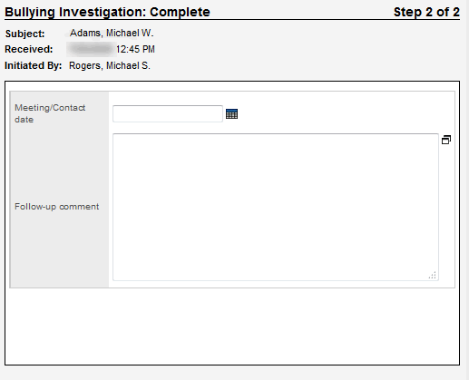 Note: The workflow does not send any type of notification to law enforcement. This step is used only to document that you have contacted law enforcement regarding the issue.