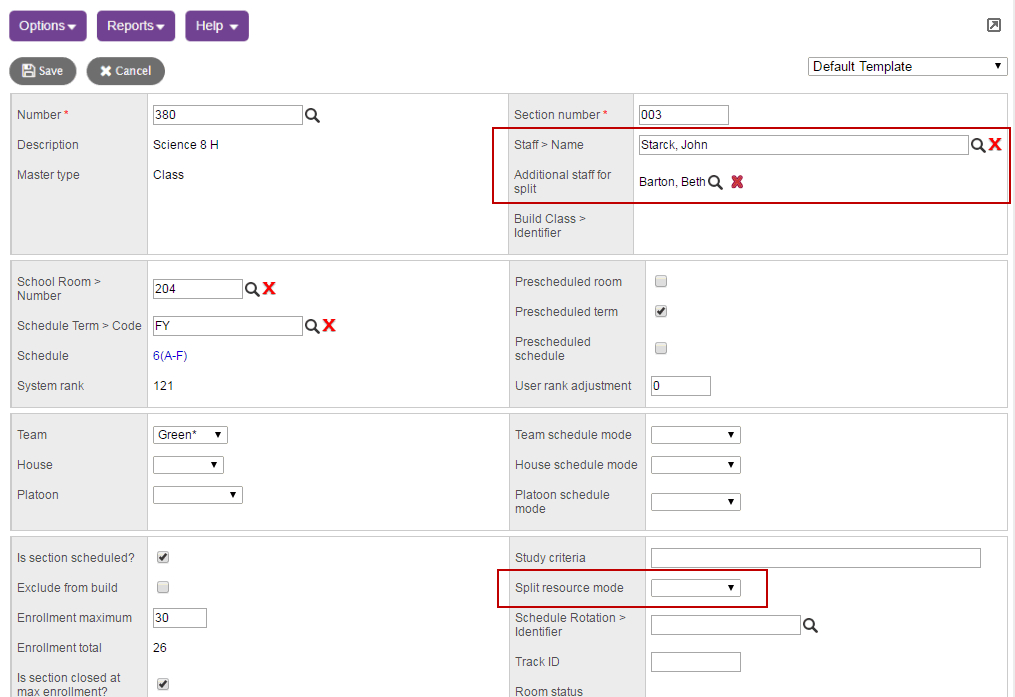 Method 3: Create a Course Resource Split rule. Using a rule, you can identify a group of teachers and which schedule patterns each can be scheduled for the courses you identify. Then, the scheduling engine uses either the staff names you identify on a course section’s details using Split Resource Mode or using Dynamic Teacher Assignments Mode.