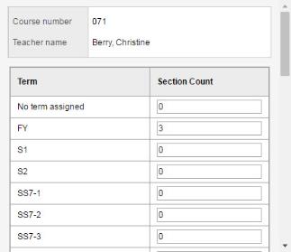 - For each term, type the number of sections you want to assign to the teacher, and click Save.
