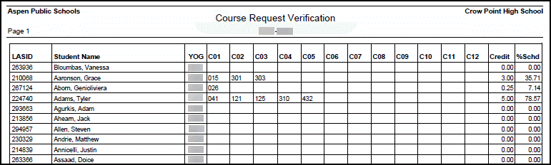 run the Course Request Verification report to verify that students request