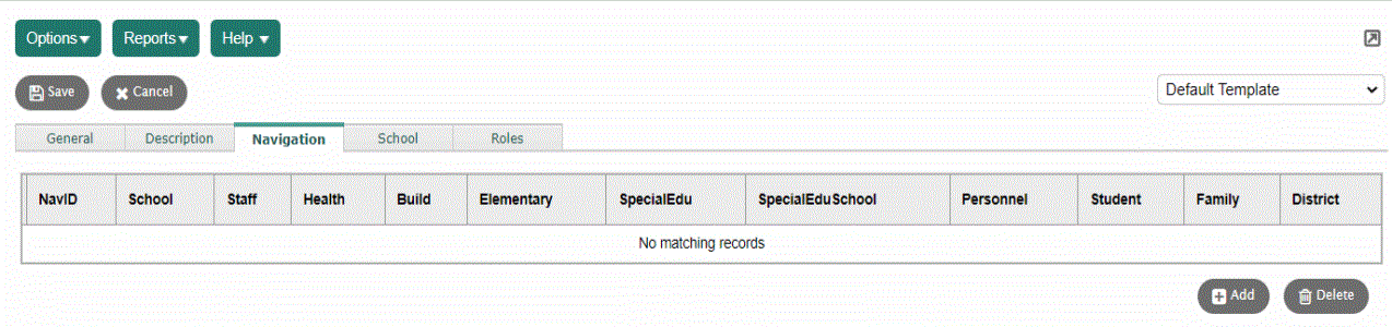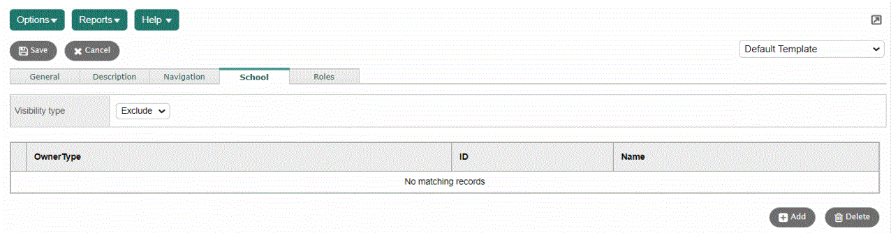1. To define which districts, intermediate organizations, or schools have the ability to run the import from the Options menu, click the School sub-tab. By default, all the educational units owned by the organization whose view you are logged on to have this ability.