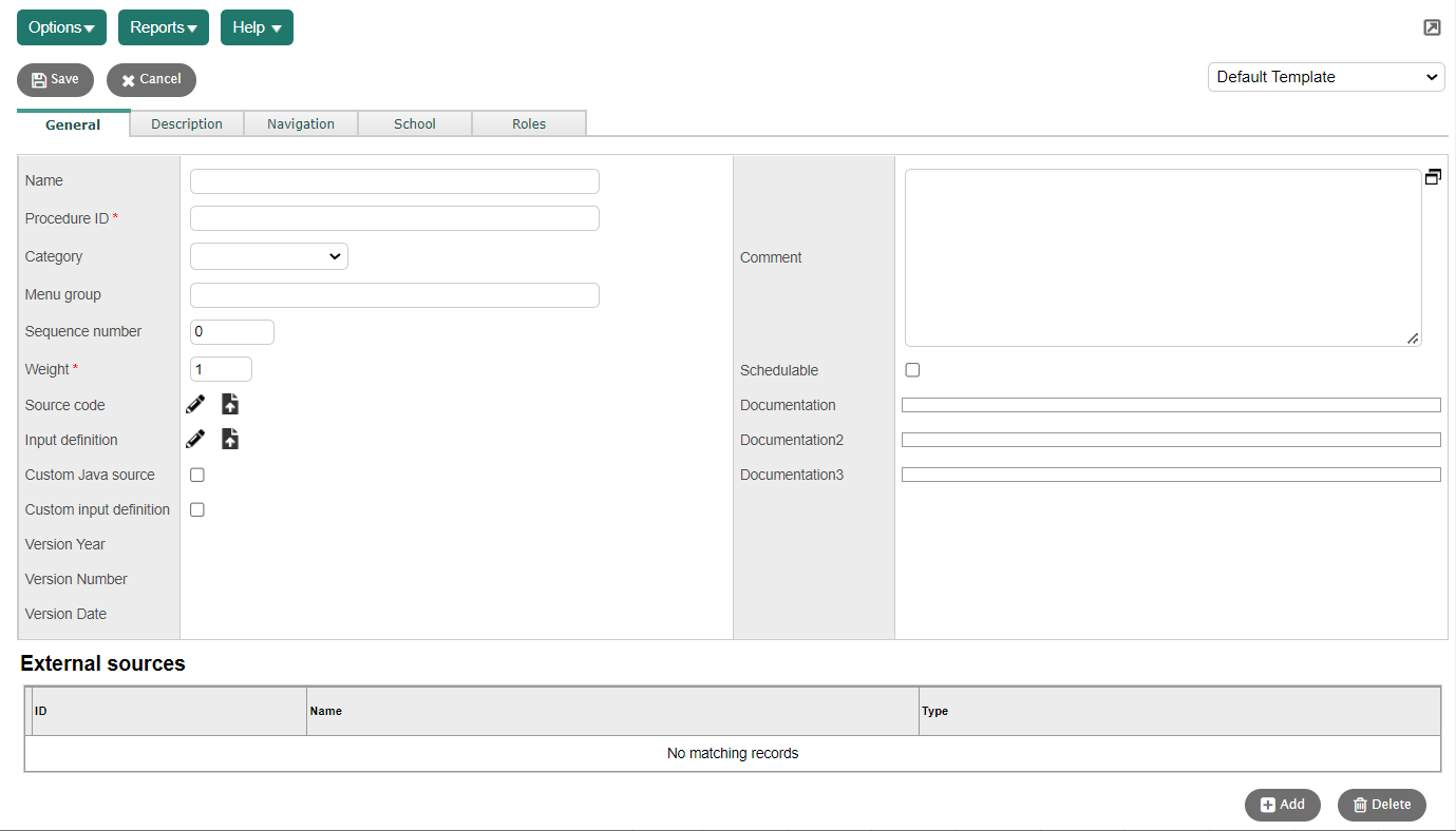 • To create a new procedure, select Options> Add. The procedure details page appears.