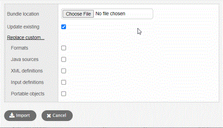 4. From the Options menu, click Import Bundle. The Bundle Import pop-up appears:
